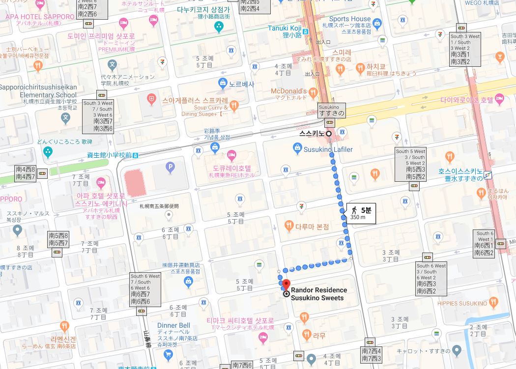 구글지도에서 Randor Residence Susukino Suites 로 검색해서 찾아가세요.