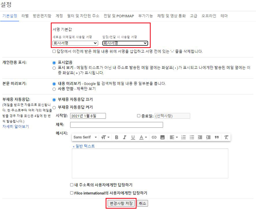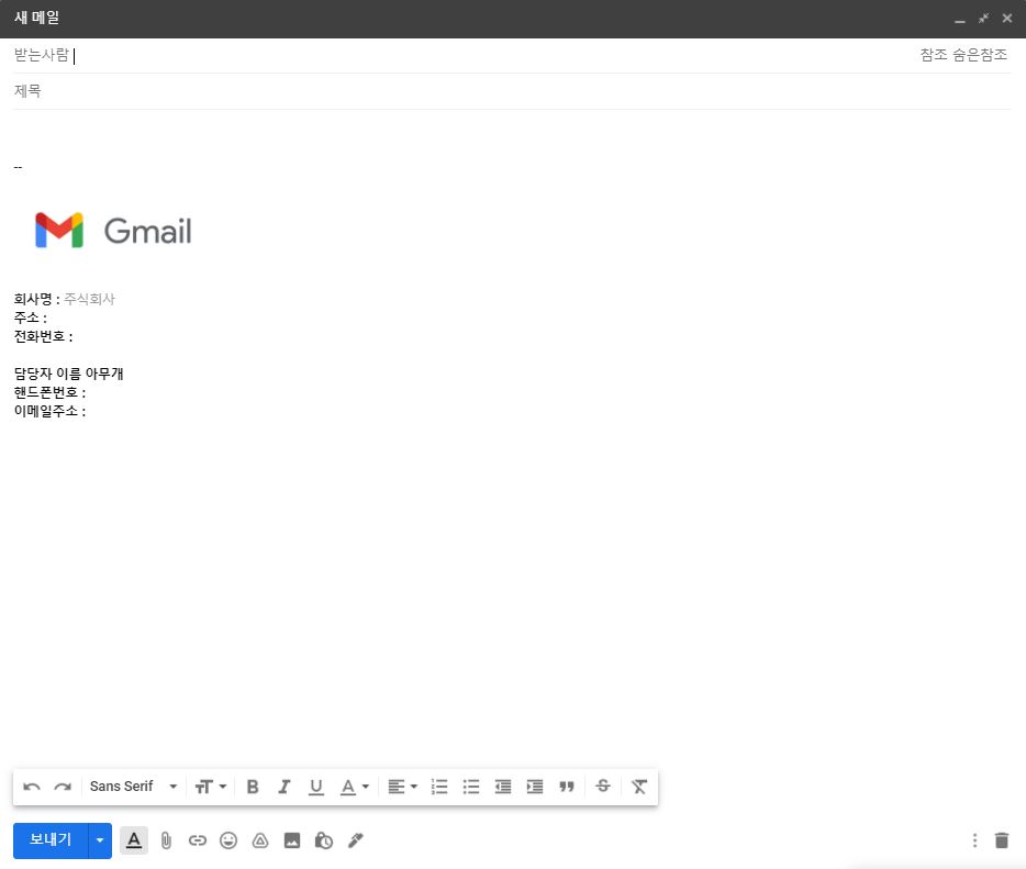 회사에서 업무용으로 gmail을 사용하는데 하단에 로고, 회사명, 주소, 홈페이지, 담당자 연락처 등 정보를 넣고 싶을때