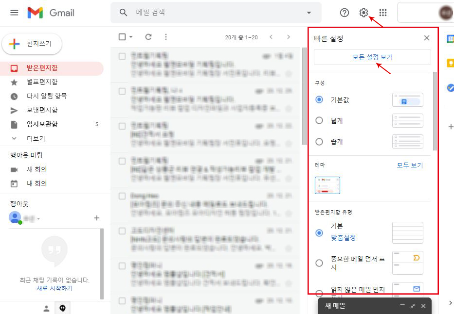 ① 오른쪽 위에 설정을 클릭 > 빠른설정에 모든설정보기 클릭