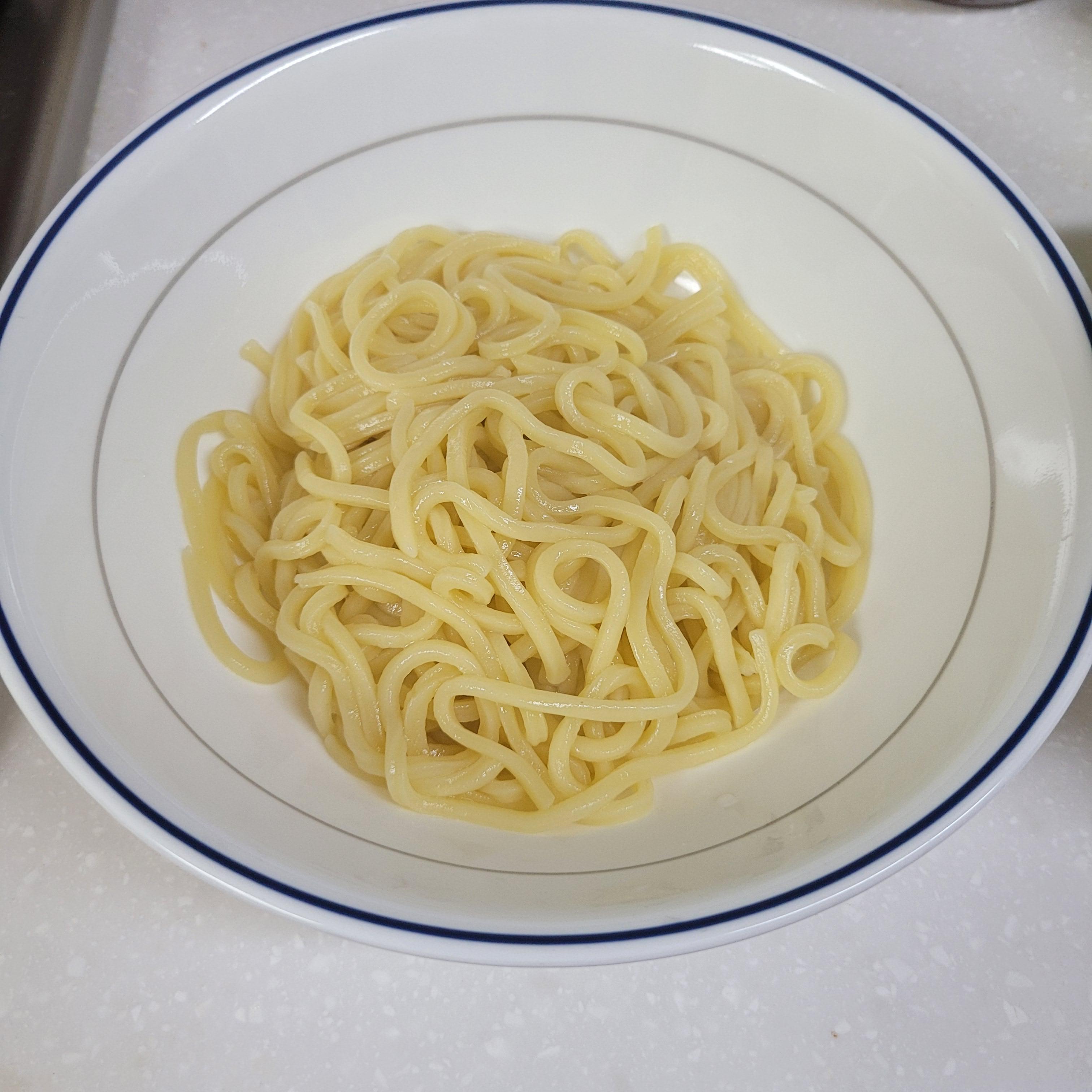 다른 냄비에 물을 끓여서 밀키트 안에있던 면을 1분간 데쳐준후 건져서 그릇에 담아주세요.
