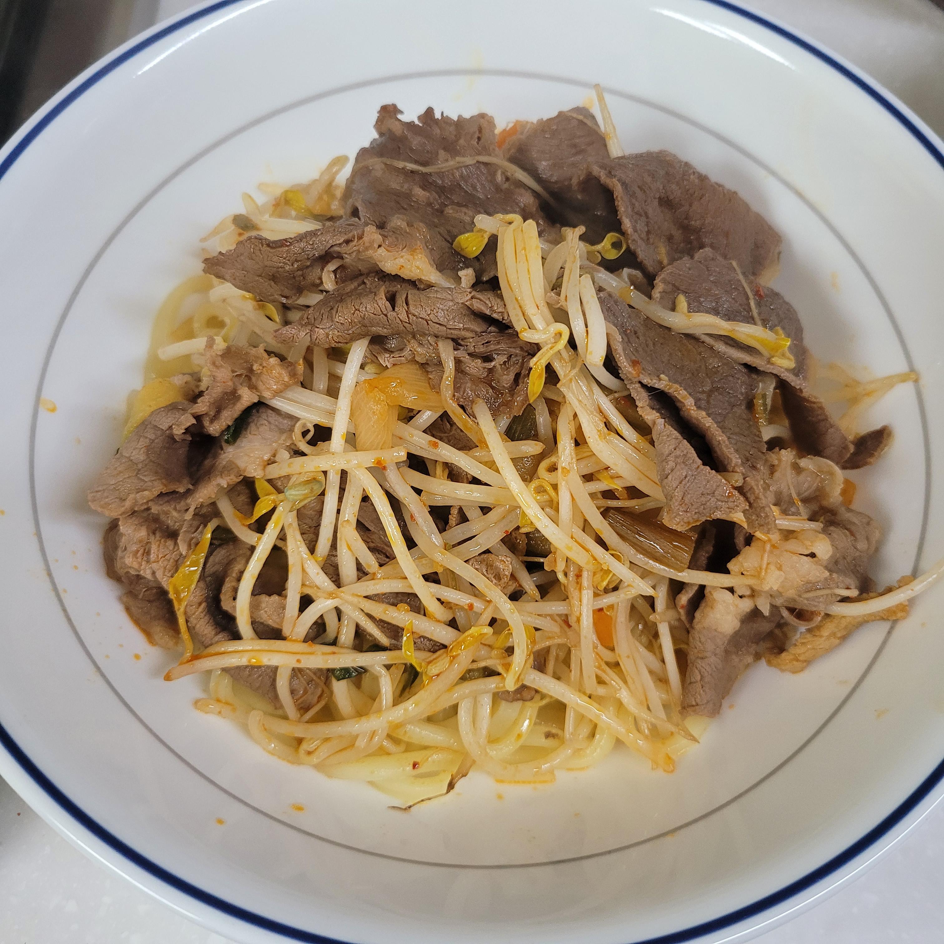 고기듬뿍 고기짬뽕이 끓으면 마지막으로 숙주를 넣고 2분간 끓여주세요.