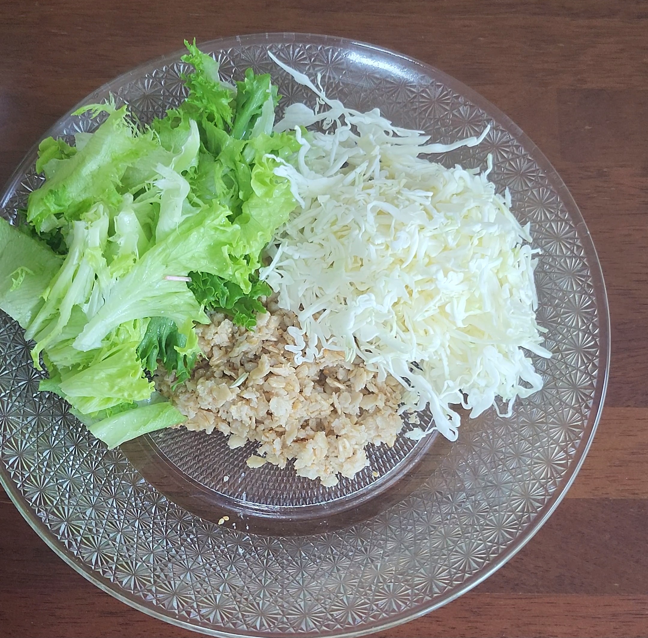2. 샐러드채소🥗, 양배추채, 옥수수캔, 닭가슴살, 크래미를 준비해주세요.