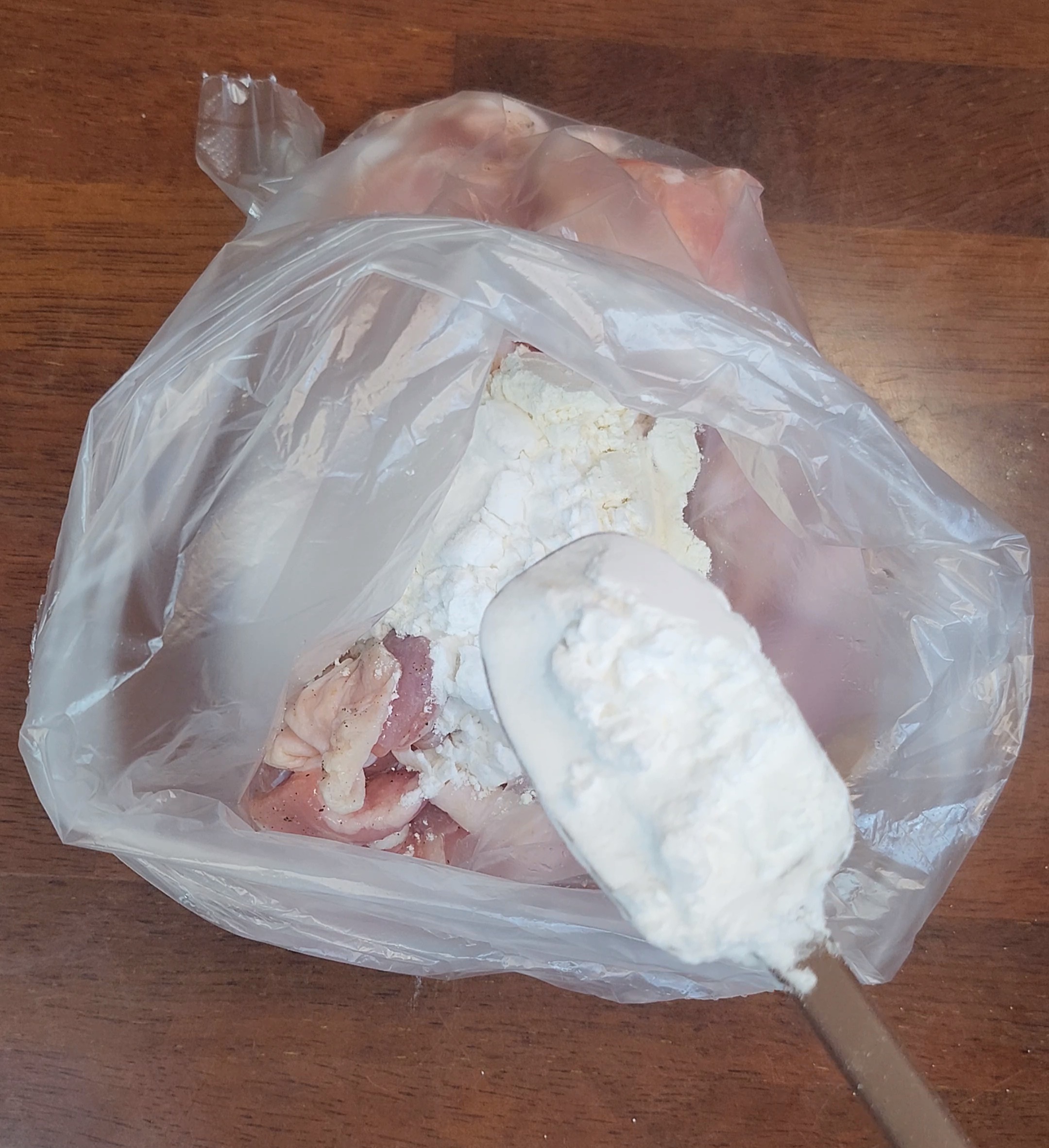 4. 비닐봉지에 담고 튀김가루2T, 전분가루2T를 넣고 비닐을 묶어서 잘섞이게 흔들어주세요