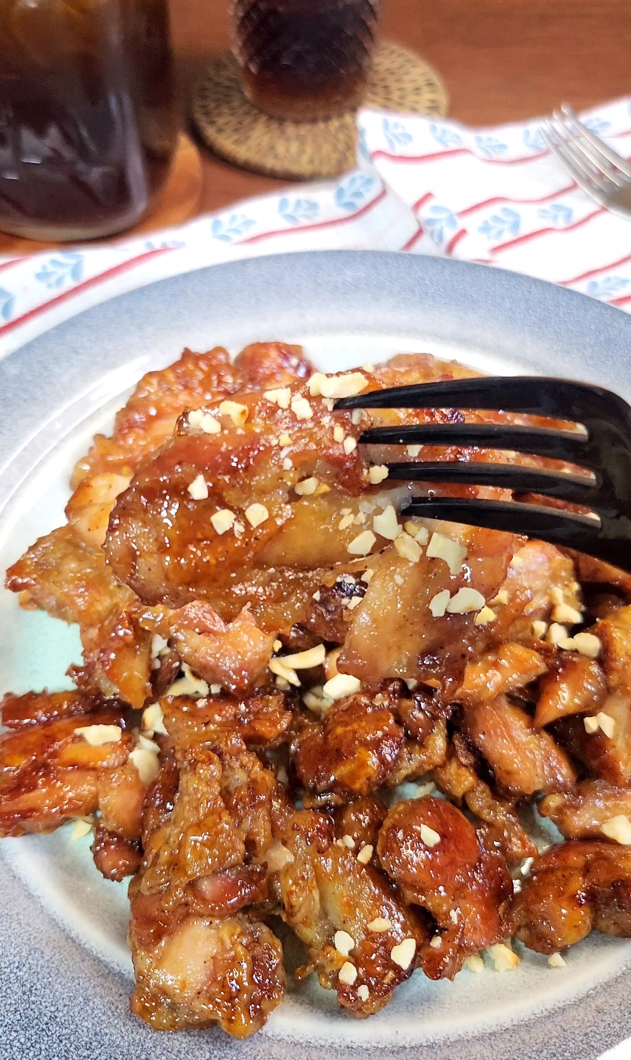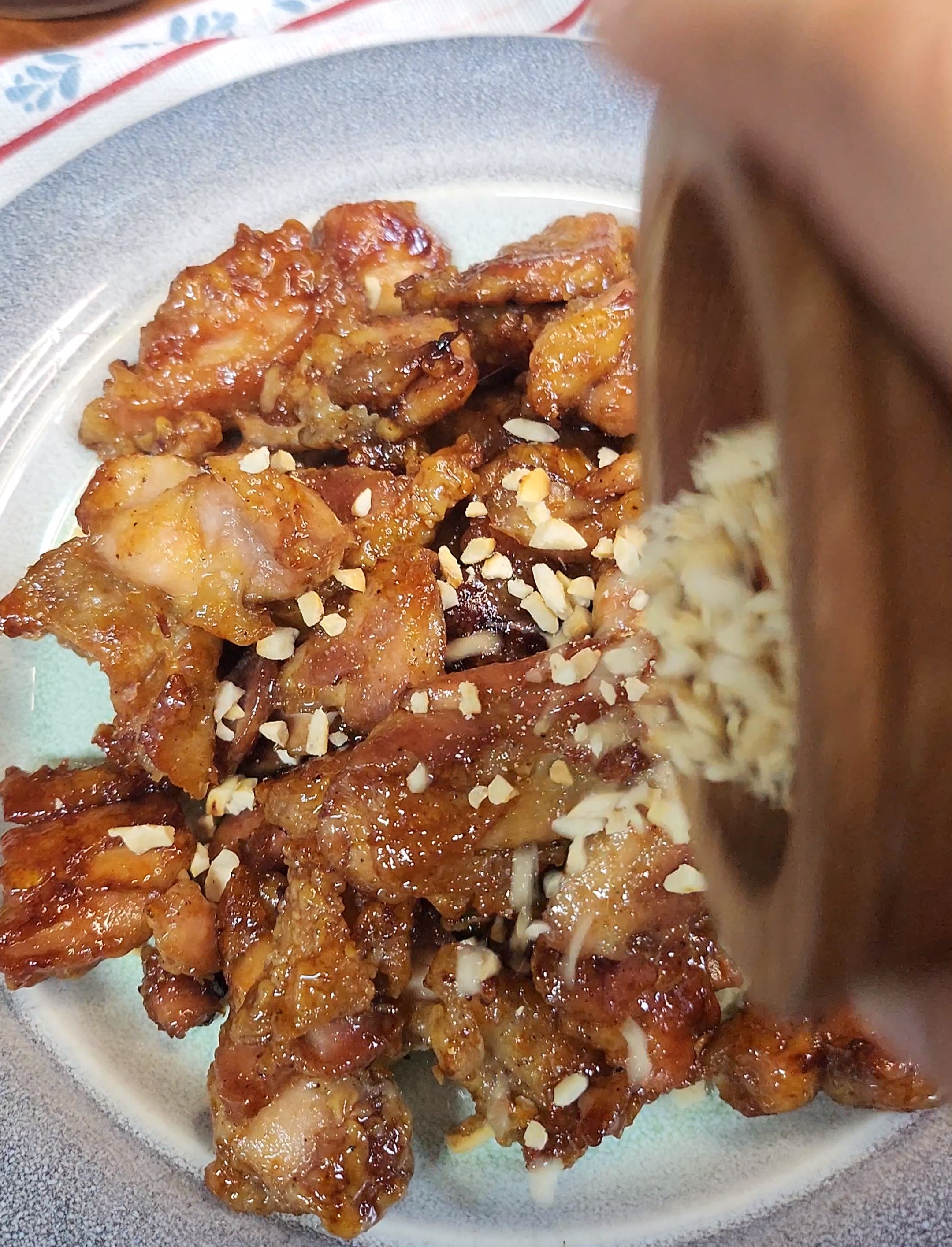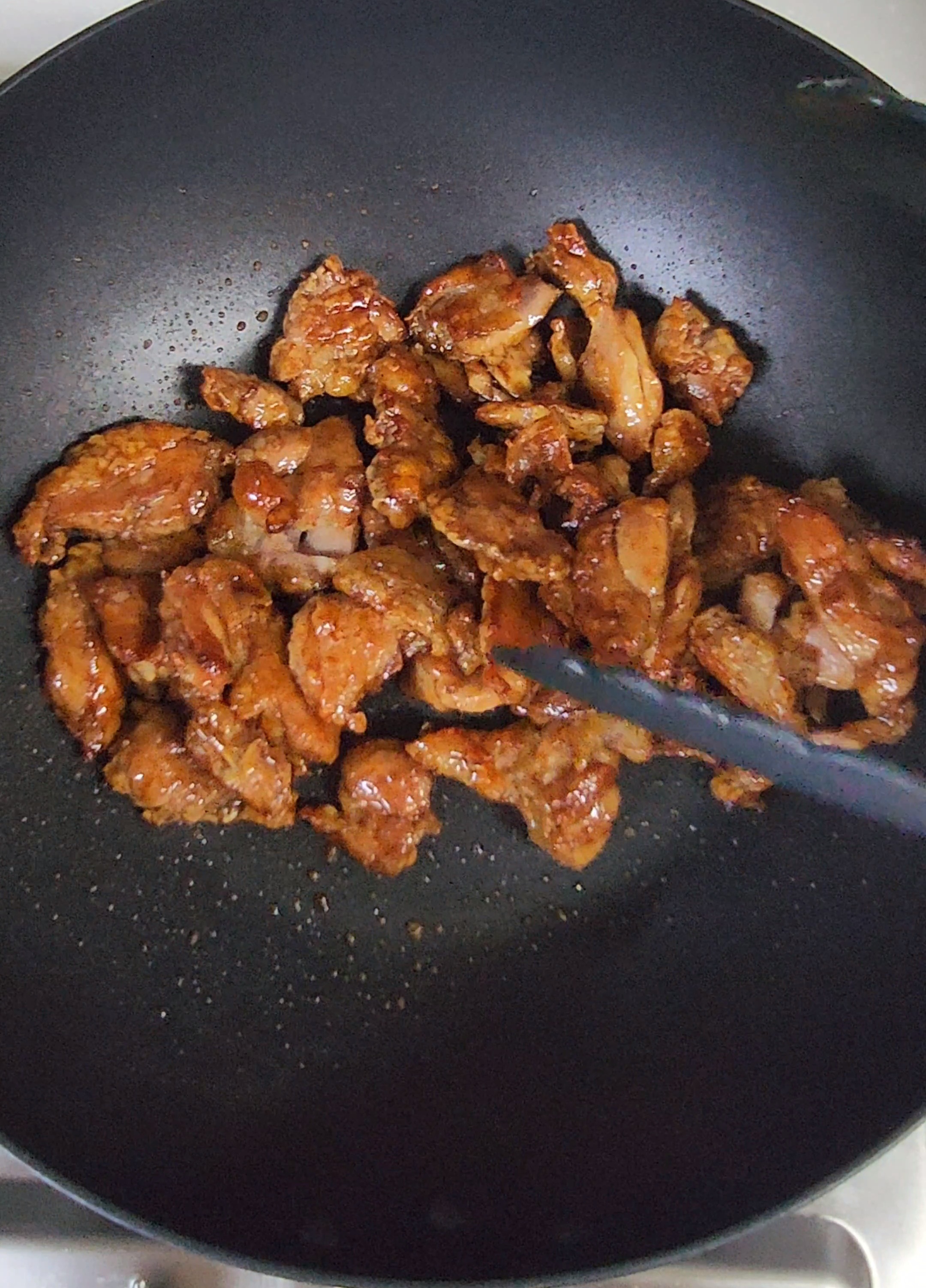 8. 소스에 구워진 닭을 넣고 버무려주세요